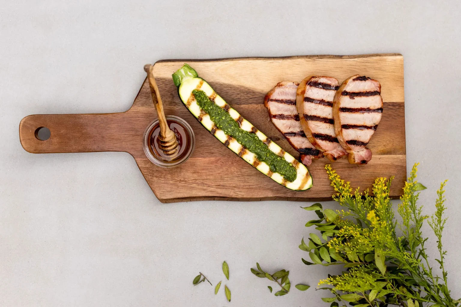 Skerið kúrbítinn langsum og penslið með ólífuolíu. Sáldrið sjávarsalti yfir kúrbítinn og grillið í 15-20 mín eða þar til að kúrbíturinn er mjúkur í gegn. Berið fram með fersku pestó.